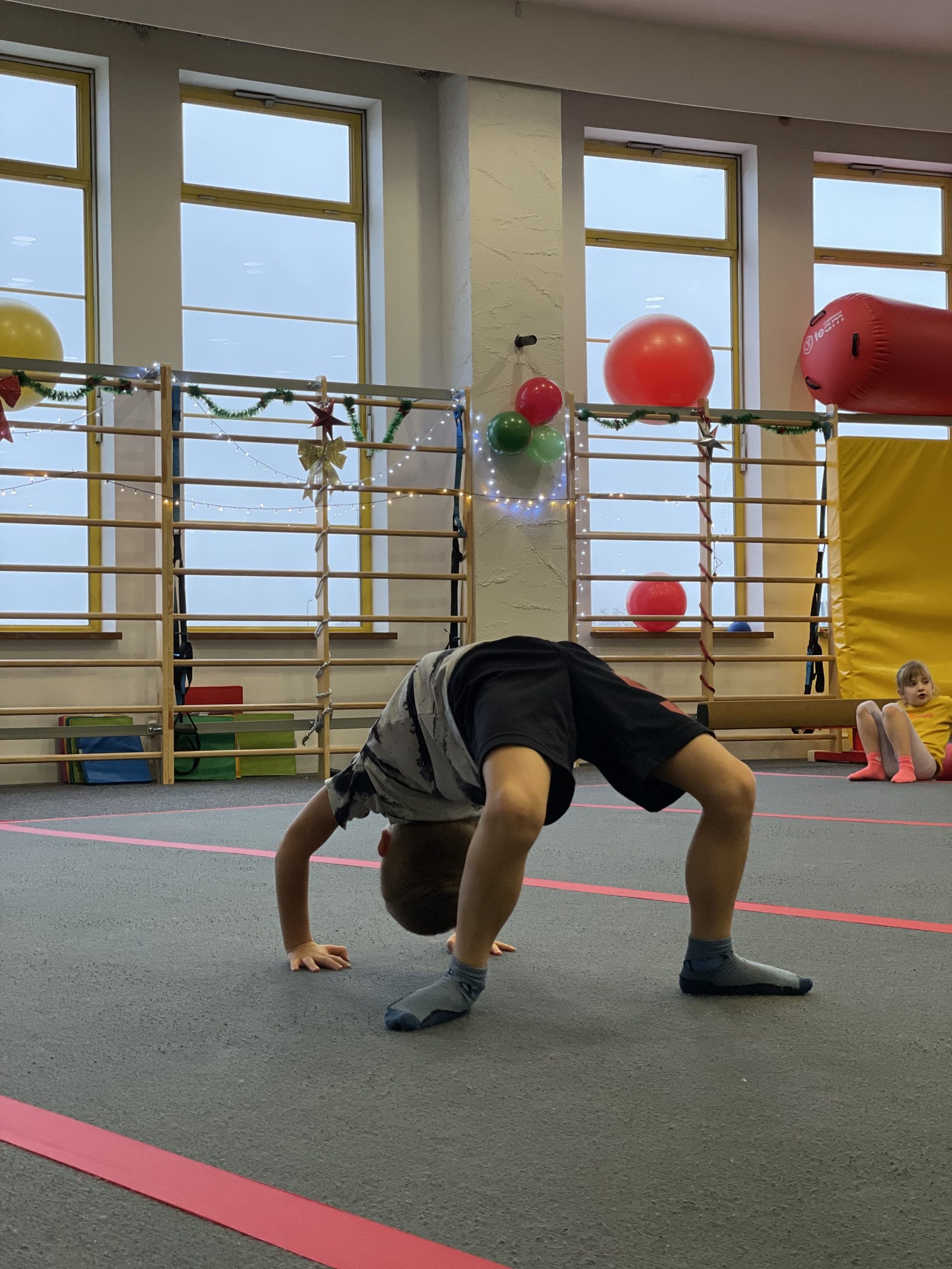 - Stanie na rękach 5 sekund (bez chodzenia rękami)